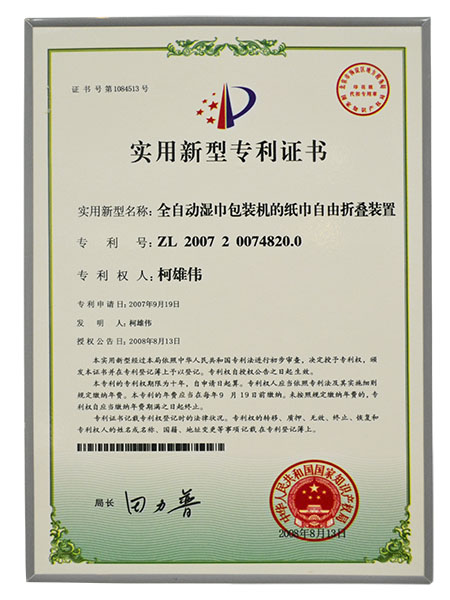 • 全自动湿巾包装机的纸巾自由折叠装置
